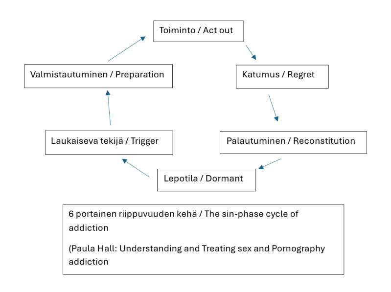 Pakonomaiseen seksikäyttäytymiseen eli pornoriippuvuus liittyy usein samankaltainen kierre kuin muissakin riippuvuuksissa.